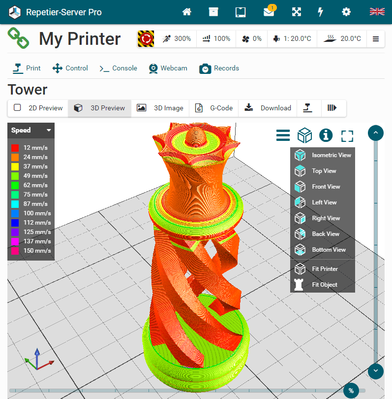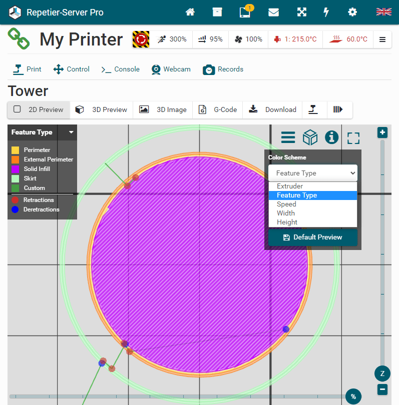 color scheme (Extruder, Feature Type, Speed, Width and Height) and what you want so be displayd. Click