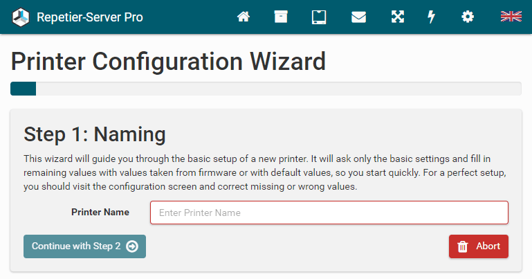 The easiest way to set up a new printer is to upload an existing backup file. Go to