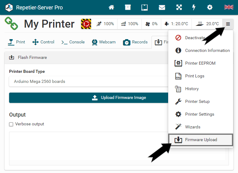In case of an AVR board you get the option to flash the compiled firmware directly to the printer.
