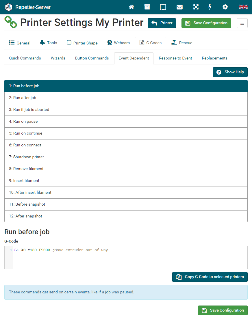 by the match. In this example we take the "Response to Event" tab of the printer configuration. When