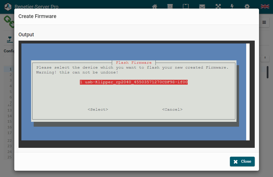 selection will flash the firmware.