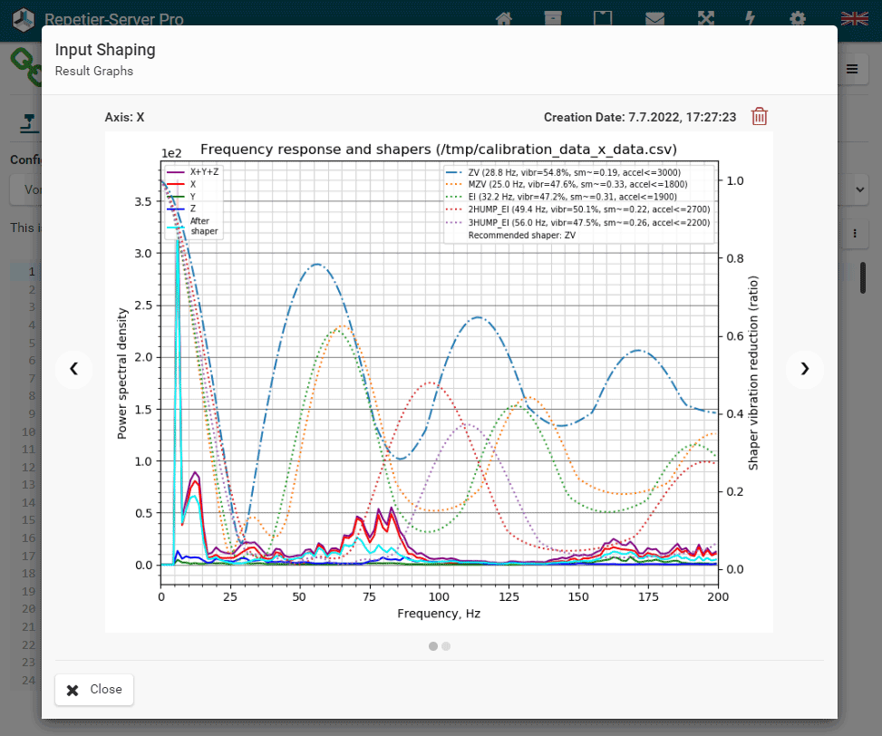 The results graphs can be viewed at any time on the Klipper configuration page by pressing the