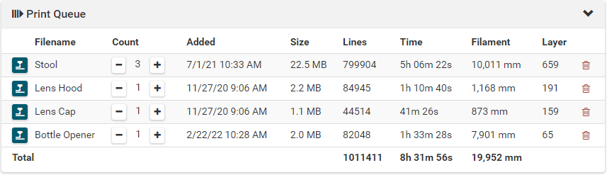 Resets meatpack usage statistics. You can call this for example at the start of a print and query efficiency at end of print with @meatpackStatus.