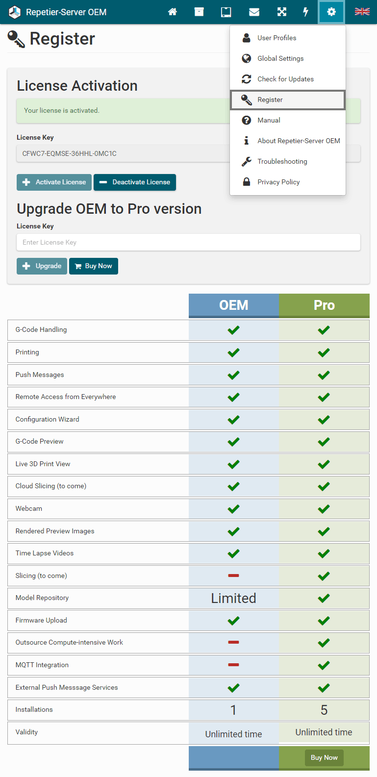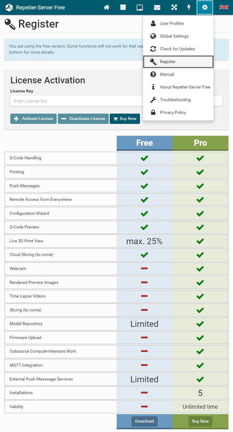 First you should download the latest version of Repetier-Server Pro from our homepage at https://www.repetier-server.com.
